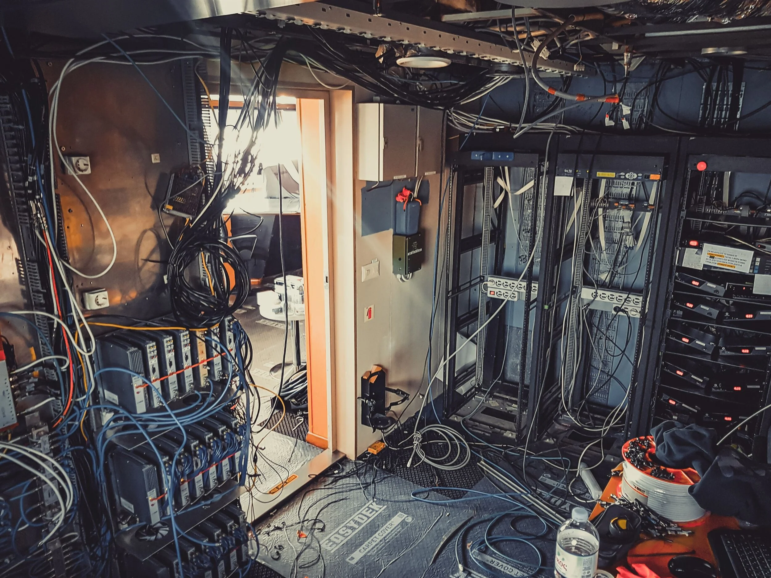 Installation of the > 1000 meters of RF and UTP cabling within the racks.
